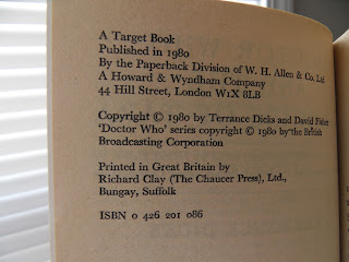 Doctor Who novelisations as some collectors were getting very confused about the reprints, how you could identify them and so on. And as it's a far more complex subject than you might imagine, and as Facebook is very transient, I thought it was worth putting some thoughts and explanations on the Blog so that they can be referred to going forward, maintained and updated with new information, and generally remain accessible to anyone who wants to know.